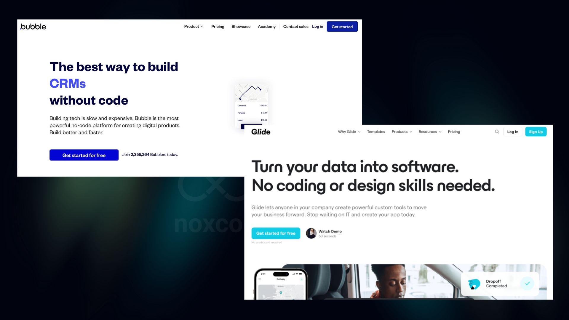 Bubble et Glide fournissent deux plateformes différentes pour le développement d'applications no code avec des fonctionnalités différentes.