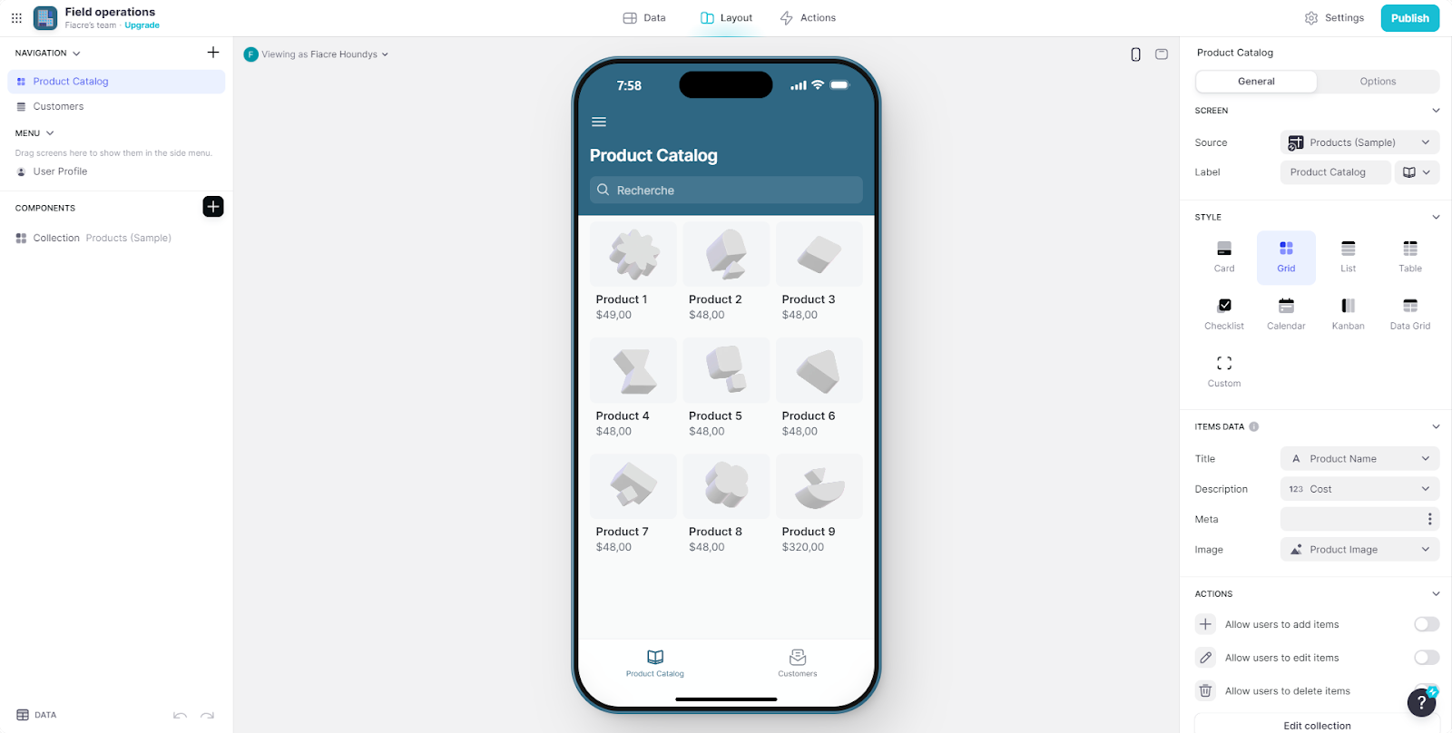 - Une vitrine de base de données propre : Vous pouvez créer une application élégante qui sert de vitrine à une base de données. Cette solution convient aux biens immobiliers, aux présentations de produits, aux recettes ou à toute autre collecte de données. L'application bénéficiera d'une interface utilisateur qui affiche les informations de manière attrayante et conviviale.