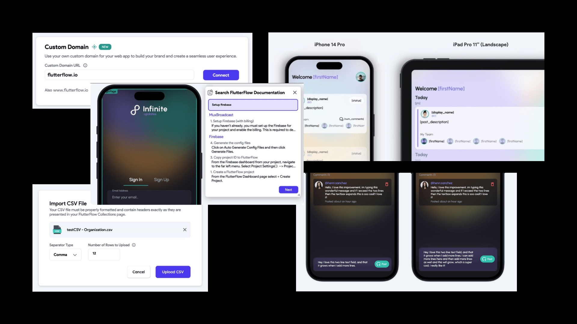 - Importation de données CSV : téléchargez un fichier CSV directement à l'aide du gestionnaire de contenu de FlutterFlow.