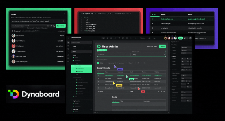Dynaboard est un outil qui vous permet de développer des applications web rapides et puissantes. La particularité de cet outil est que vous pouvez simultanément collaborer sur le code et l'UX sans effort. Pour l'instant, l'outil est en version bêta, mais il promet de grandes choses.
