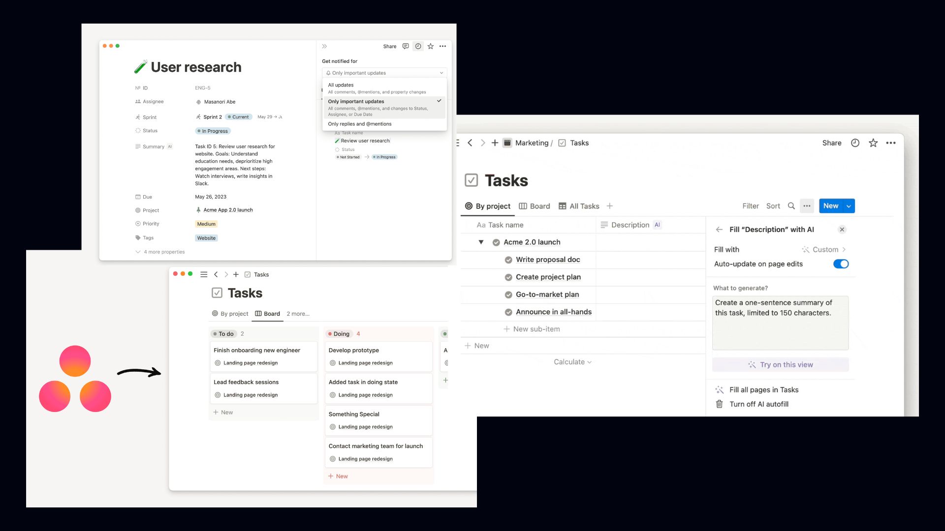 Enfin, il est désormais possible d'importer des projets depuis Asana, y compris les équipes, les tâches et tous les autres champs, grâce à l'outil d'importation intégré. Ces améliorations rendent Notion encore plus efficace et convivial en tant qu'outil de gestion de projet.