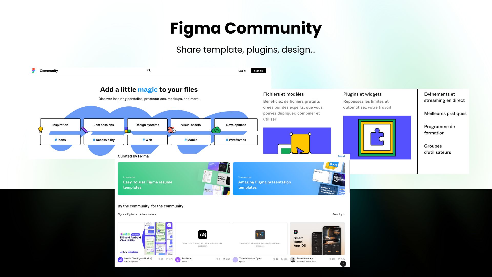 La Figma Community est l'endroit idéal pour partager vos créations et communiquer avec l'ensemble de la communauté Figma.