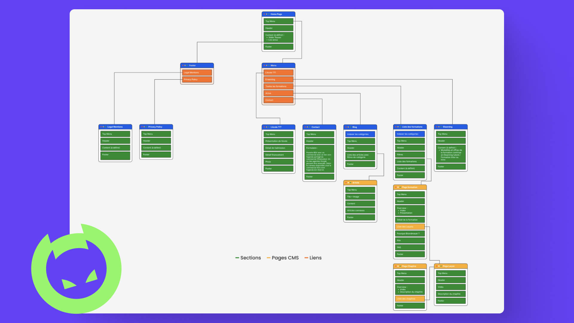 Avant de commencer, notre priorité absolue était de créer un diagramme décrivant l'ensemble de la structure afin de clarifier la liste des pages et leur contenu.